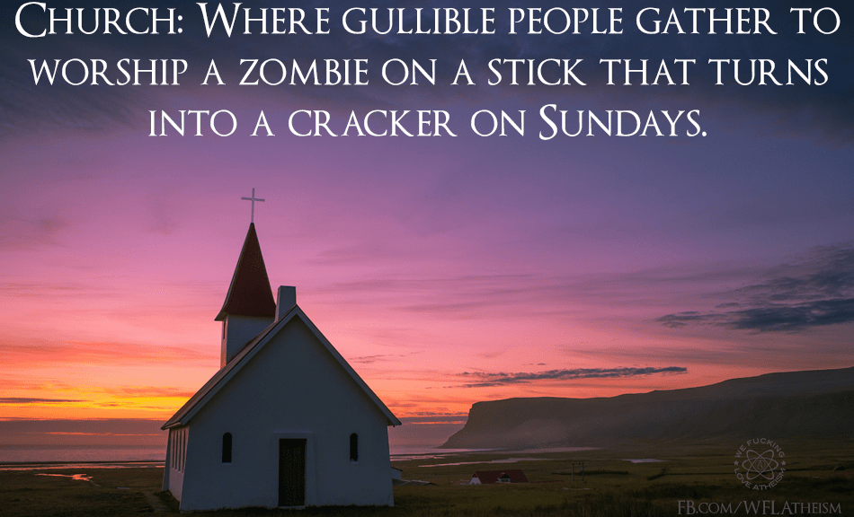 Agnostic, Atheism, Humor Zombie Crackers Image June 10, 2015 We Fucking Love Atheism Leave a comment Share this: Click to share on X (Opens in new window) X Click to share on Facebook (Opens in new window) Facebook Click to share on Pinterest (Opens in new window) Pinterest Click to share on Tumblr (Opens in new window) Tumblr Click to share on Reddit (Opens in new window) Reddit Related
