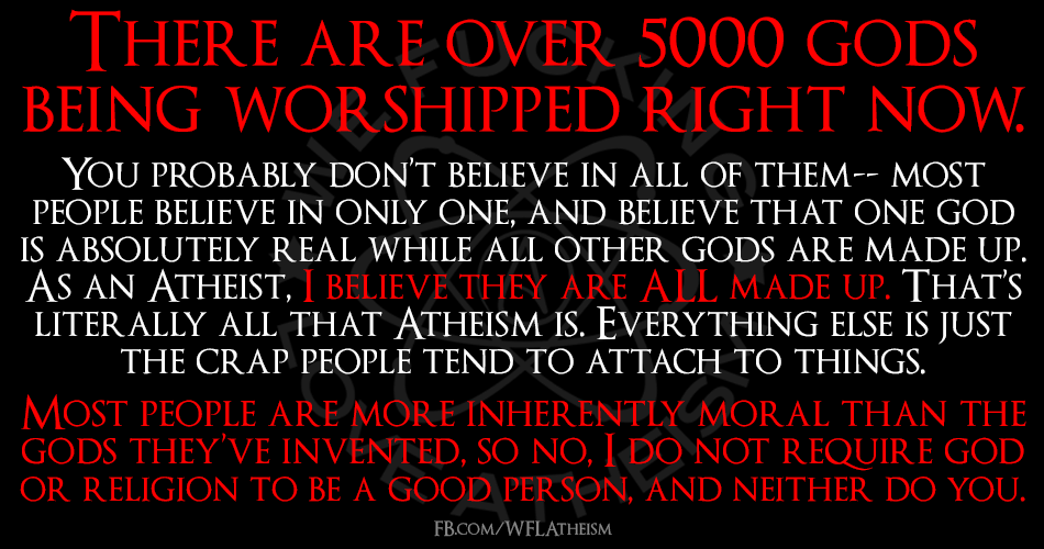 Atheism 5000 Gods June 18, 2015 We Fucking Love Atheism 1 Comment Share this: Click to share on X (Opens in new window) X Click to share on Facebook (Opens in new window) Facebook Click to share on Pinterest (Opens in new window) Pinterest Click to share on Tumblr (Opens in new window) Tumblr Click to share on Reddit (Opens in new window) Reddit Like Loading... Related