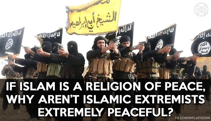 Agnostic, Atheism, Humor, Islam Extremely peaceful? Image June 24, 2015 We Fucking Love Atheism Leave a comment Share this: Click to share on X (Opens in new window) X Click to share on Facebook (Opens in new window) Facebook Click to share on Pinterest (Opens in new window) Pinterest Click to share on Tumblr (Opens in new window) Tumblr Click to share on Reddit (Opens in new window) Reddit Related