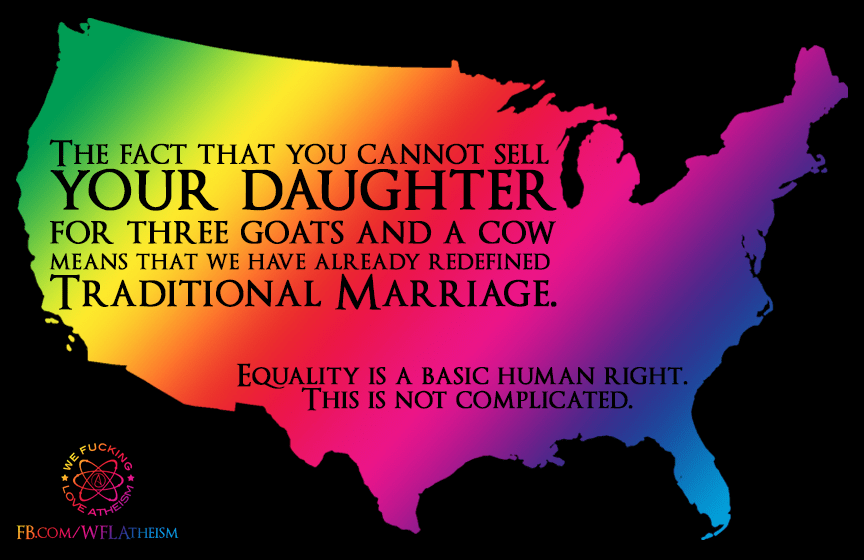 Agnostic, Atheism, Equality, Secular Humanist Traditional Marriage Image June 26, 2015 We Fucking Love Atheism Leave a comment Share this: Click to share on X (Opens in new window) X Click to share on Facebook (Opens in new window) Facebook Click to share on Pinterest (Opens in new window) Pinterest Click to share on Tumblr (Opens in new window) Tumblr Click to share on Reddit (Opens in new window) Reddit Related