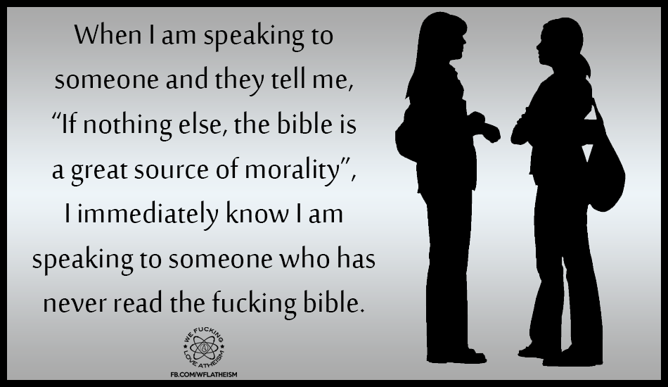 Agnostic, Atheism, Humor The fucking bible Image October 23, 2015 We Fucking Love Atheism Leave a comment Share this: Click to share on X (Opens in new window) X Click to share on Facebook (Opens in new window) Facebook Click to share on Pinterest (Opens in new window) Pinterest Click to share on Tumblr (Opens in new window) Tumblr Click to share on Reddit (Opens in new window) Reddit Related