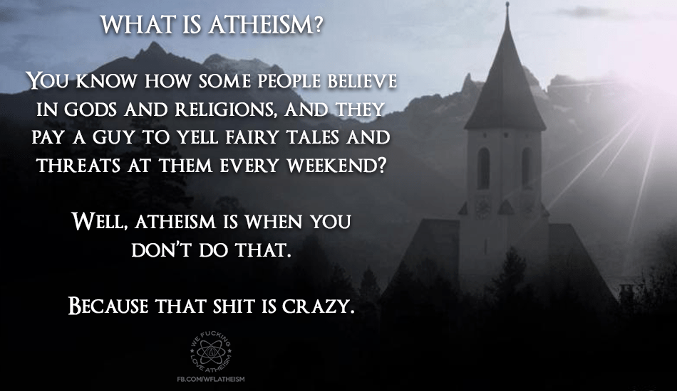 Atheism, Humor That shit is crazy Image October 31, 2015 We Fucking Love Atheism Leave a comment Share this: Click to share on X (Opens in new window) X Click to share on Facebook (Opens in new window) Facebook Click to share on Pinterest (Opens in new window) Pinterest Click to share on Tumblr (Opens in new window) Tumblr Click to share on Reddit (Opens in new window) Reddit Related