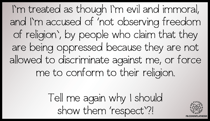 Agnostic, Atheism, Secular Humanist Respect?! Image November 14, 2015 We Fucking Love Atheism Leave a comment Share this: Click to share on X (Opens in new window) X Click to share on Facebook (Opens in new window) Facebook Click to share on Pinterest (Opens in new window) Pinterest Click to share on Tumblr (Opens in new window) Tumblr Click to share on Reddit (Opens in new window) Reddit Related