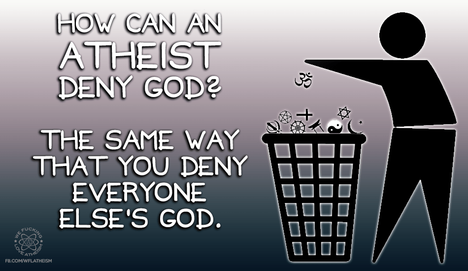 Atheism, Humor Deny Image November 20, 2015 We Fucking Love Atheism Leave a comment Share this: Click to share on X (Opens in new window) X Click to share on Facebook (Opens in new window) Facebook Click to share on Pinterest (Opens in new window) Pinterest Click to share on Tumblr (Opens in new window) Tumblr Click to share on Reddit (Opens in new window) Reddit Related