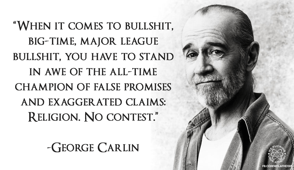 Agnostic, Atheism, George Carlin, Humor, Quotes Big-time bullshit Image November 21, 2015 We Fucking Love Atheism Leave a comment Share this: Click to share on X (Opens in new window) X Click to share on Facebook (Opens in new window) Facebook Click to share on Pinterest (Opens in new window) Pinterest Click to share on Tumblr (Opens in new window) Tumblr Click to share on Reddit (Opens in new window) Reddit Related