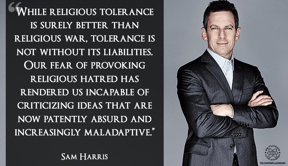 Agnostic, Atheism, Islam, Quotes, Sam Harris Tolerance? Image November 21, 2015 We Fucking Love Atheism Leave a comment Share this: Click to share on X (Opens in new window) X Click to share on Facebook (Opens in new window) Facebook Click to share on Pinterest (Opens in new window) Pinterest Click to share on Tumblr (Opens in new window) Tumblr Click to share on Reddit (Opens in new window) Reddit Related