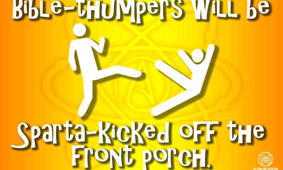 Agnostic, Atheism, Humor Sparta Kicked Image November 28, 2015 We Fucking Love Atheism 1 Comment Share this: Click to share on X (Opens in new window) X Click to share on Facebook (Opens in new window) Facebook Click to share on Pinterest (Opens in new window) Pinterest Click to share on Tumblr (Opens in new window) Tumblr Click to share on Reddit (Opens in new window) Reddit Related