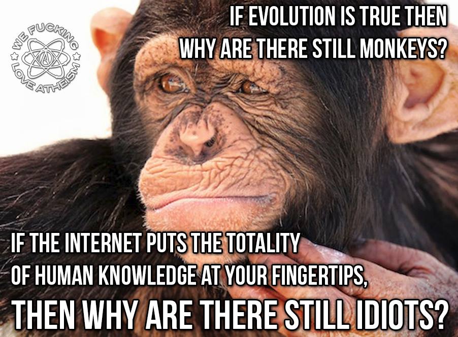 Atheism, Humor Why Are There Still Monkeys? Image August 16, 2014 We Fucking Love Atheism Leave a comment