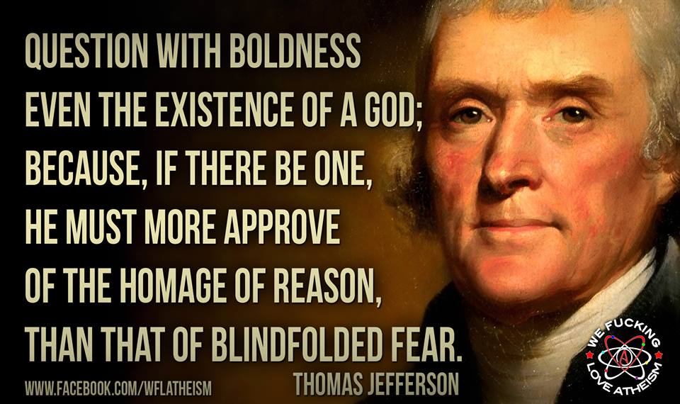 Atheism, Founding Fathers, Quotes, Thomas Jefferson Question with boldness Image October 15, 2014 We Fucking Love Atheism Leave a comment
