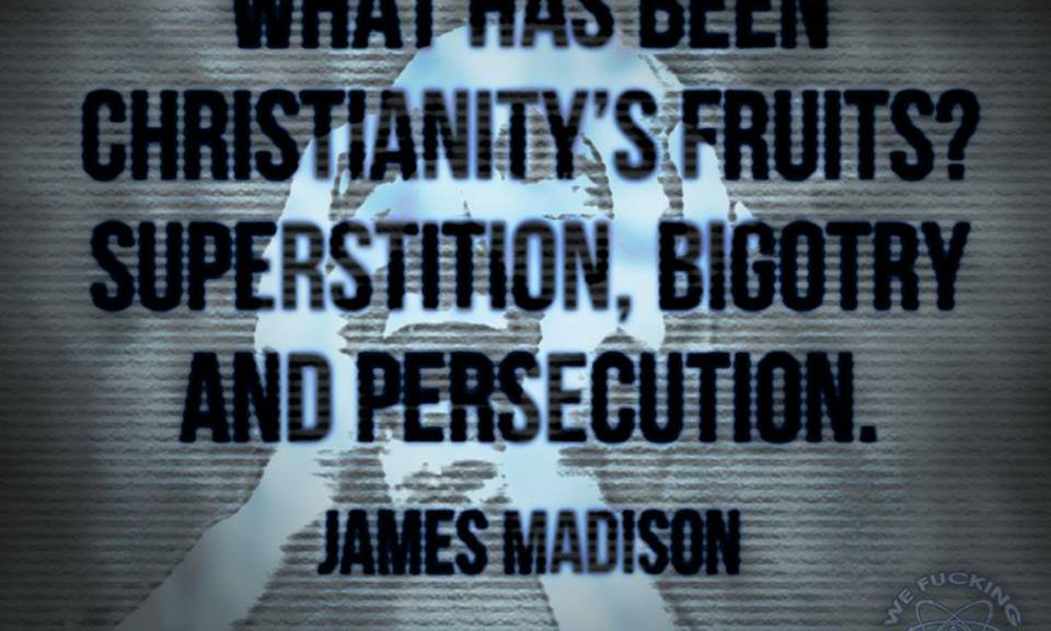Atheism, Founding Fathers, James Madison Superstition, Bigotry, Persecution Image October 24, 2014 We Fucking Love Atheism Leave a comment