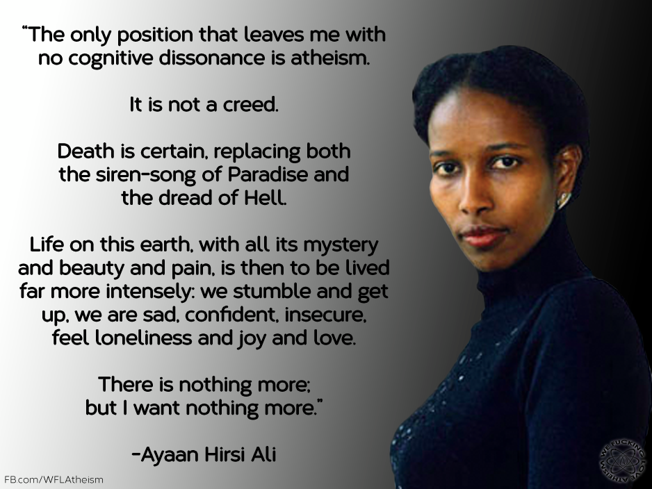 Atheism, Ayaan Hirsi Ali, Female Voices, Islam, Quotes I want nothing more. Image October 25, 2014 We Fucking Love Atheism Leave a comment
