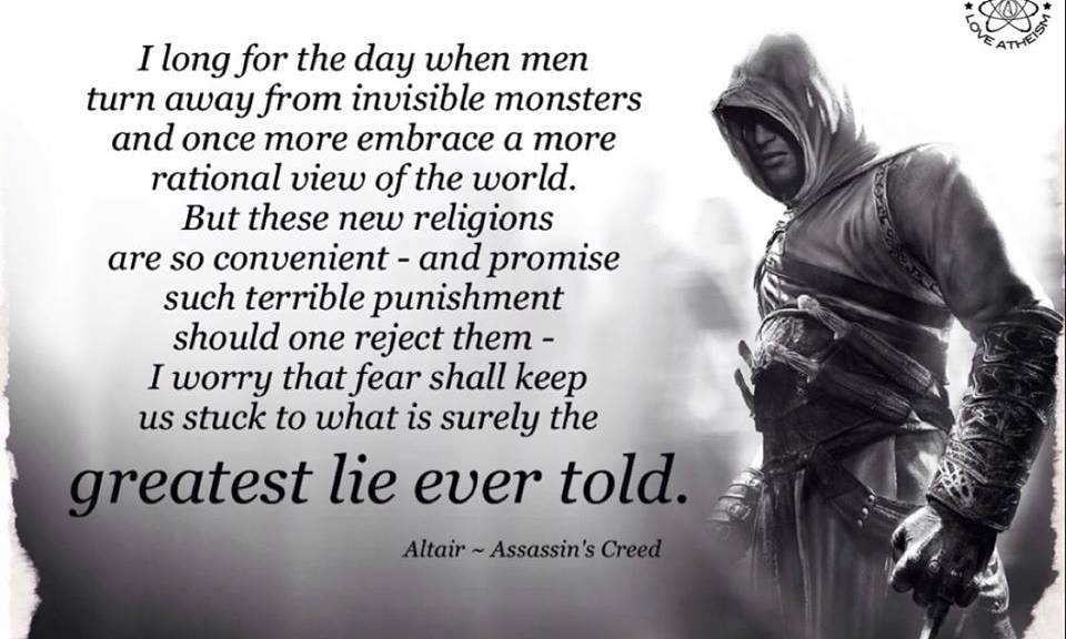 Altair - Assassins Creed, Atheism Greatest lie ever told Image November 13, 2014 We Fucking Love Atheism Leave a comment