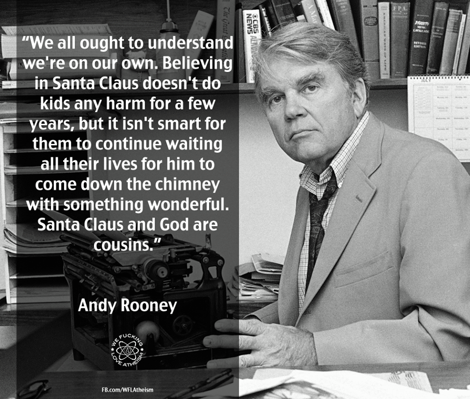 Andy Rooney, Atheism, Holidays, Humor, Quotes Santa Claus and God are cousins Image December 18, 2014 We Fucking Love Atheism Leave a comment