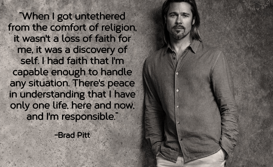 Atheism, Brad Pitt, Quotes Untethered from religion Image October 25, 2014 We Fucking Love Atheism Leave a comment