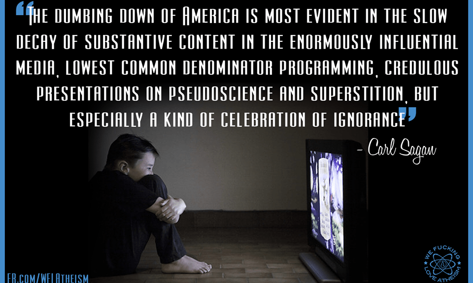 Agnostic, Atheism, Carl Sagan, Quotes, Secular Humanist The dumbing down of america Image March 5, 2015 We Fucking Love Atheism Leave a comment