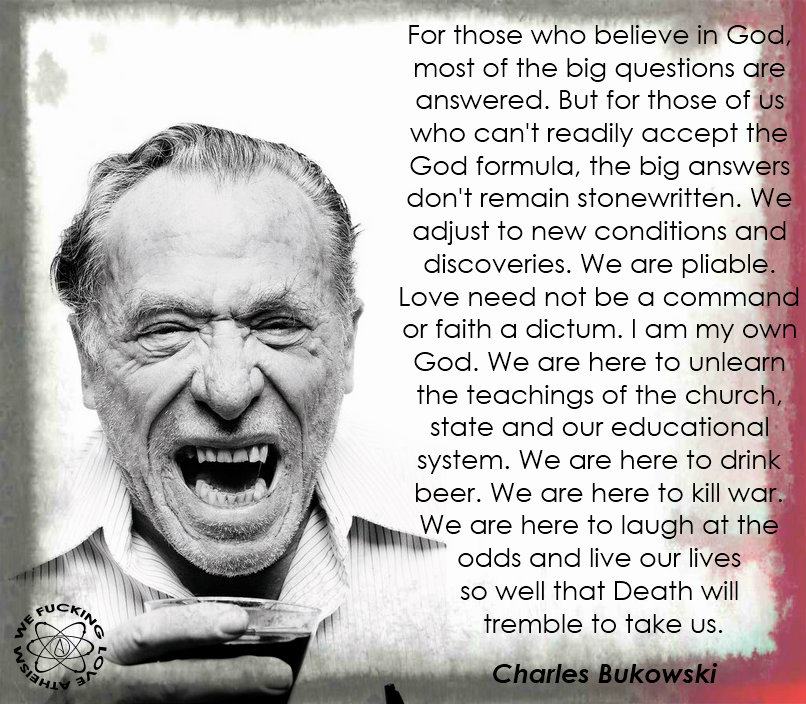 Atheism, Charles Bukowski, Quotes I am my own god Image November 5, 2014 We Fucking Love Atheism Leave a comment