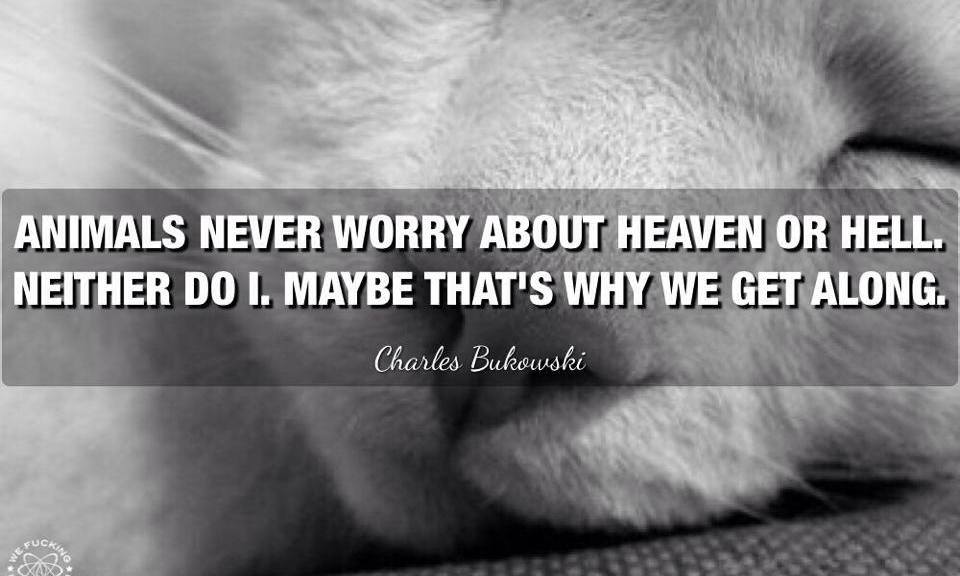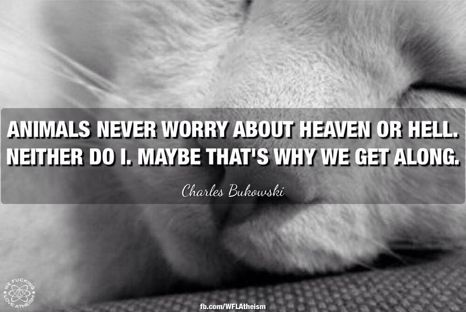 Atheism, Charles Bukowski, Quotes Animals don’t worry about heaven and hell Image February 20, 2015 We Fucking Love Atheism Leave a comment