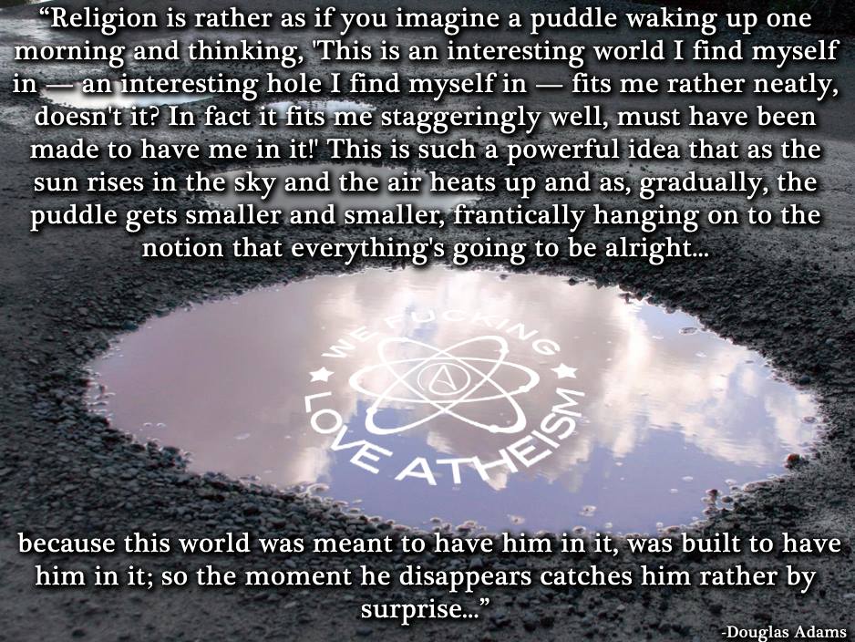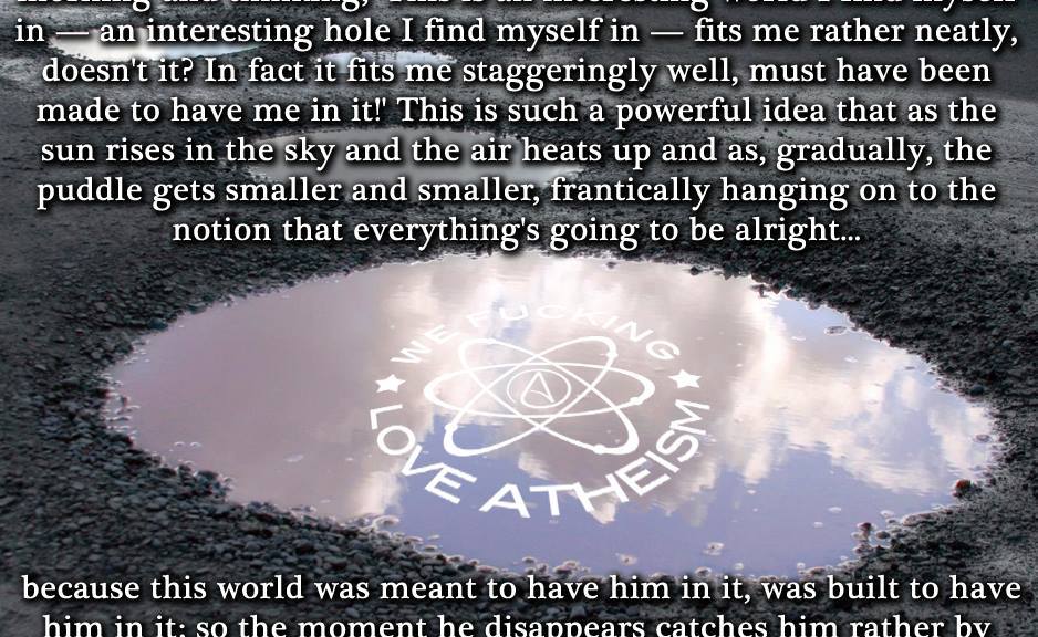 Atheism, Douglas Adams, Humor, Quotes A puddle waking up Image December 19, 2014 We Fucking Love Atheism Leave a comment