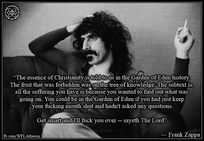 Atheism, Frank Zappa, Humor, Quotes The essence of Christianity Image February 20, 2015 We Fucking Love Atheism Leave a comment