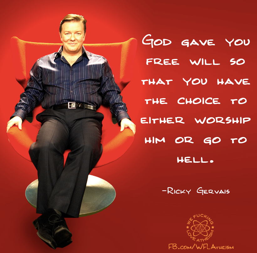 Atheism, Humor, Quotes, Ricky Gervais Worship him or go to hell Image February 20, 2015 We Fucking Love Atheism Leave a comment