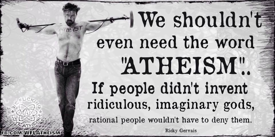 Atheism, Quotes, Ricky Gervais Ridiculous, imaginary gods Image March 3, 2015 We Fucking Love Atheism Leave a comment