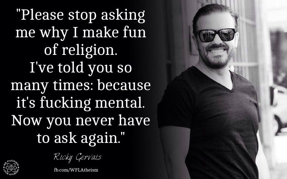 Atheism, Quotes, Ricky Gervais Because it’s fucking mental! Image January 7, 2015 We Fucking Love Atheism Leave a comment