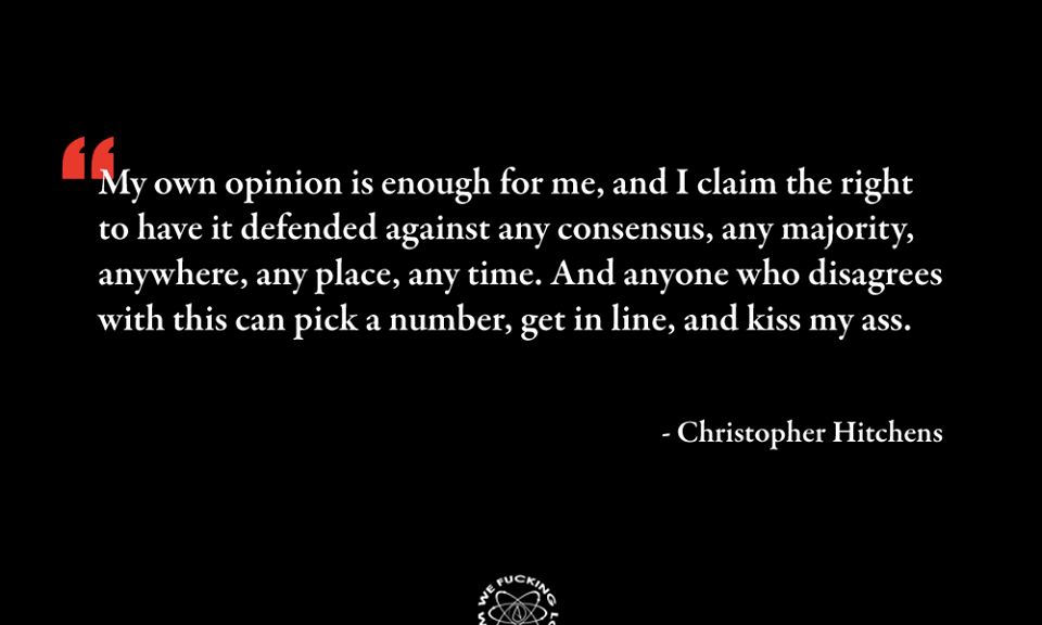 Atheism, Christopher Hitchens, Quotes Nothing optional Image February 27, 2015 We Fucking Love Atheism Leave a comment