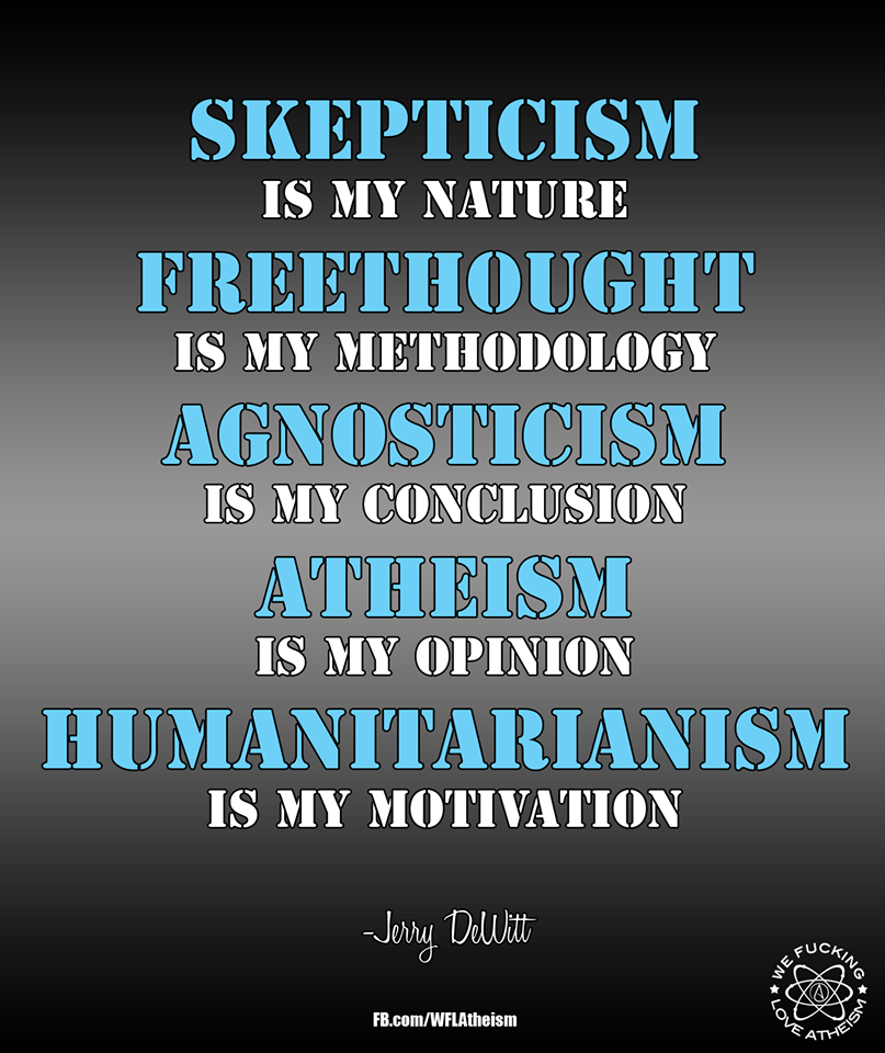 Agnostic, Atheism, Jerry DeWitt, Quotes, Secular Humanist Atheism is my opinion Image March 5, 2015 We Fucking Love Atheism Leave a comment