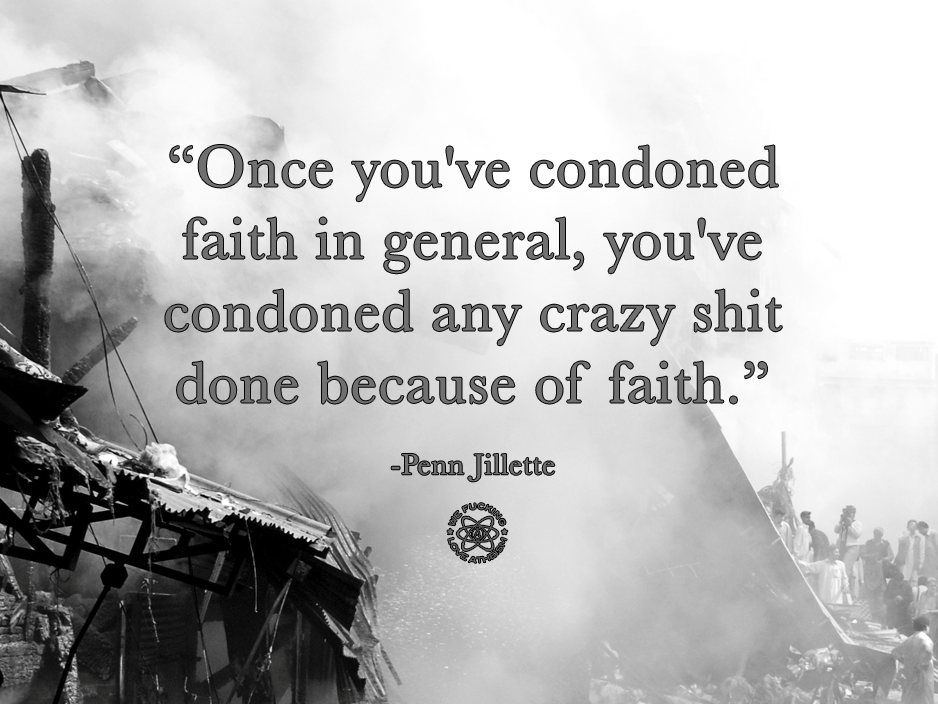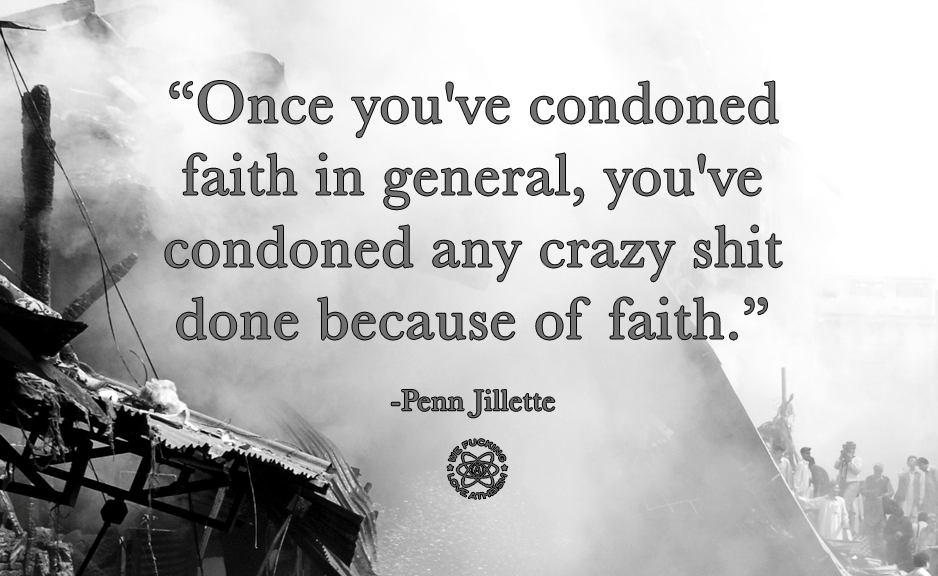 Atheism, Penn Jillette, Quotes Because of faith Image December 20, 2014 We Fucking Love Atheism Leave a comment