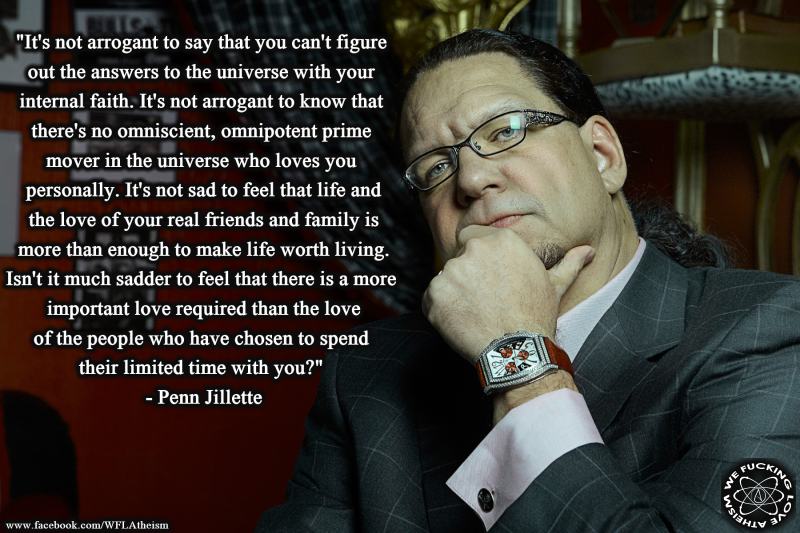 Atheism, Penn Jillette, Quotes Justification Image December 19, 2014 We Fucking Love Atheism Leave a comment