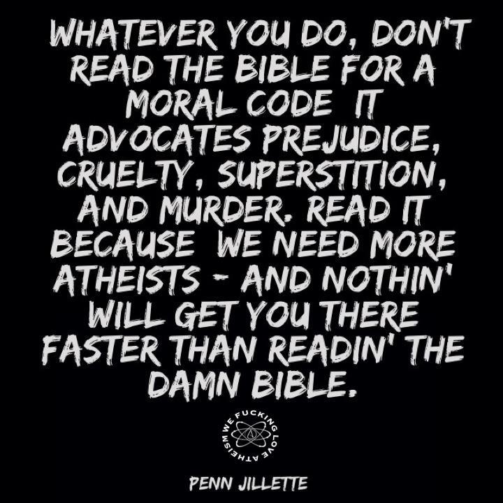 Atheism, Penn Jillette, Quotes Readin’ the damn bible Image November 8, 2014 We Fucking Love Atheism Leave a comment