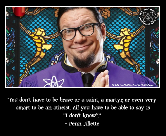 Atheism, Penn Jillette, Quotes I don’t know Image November 13, 2014 We Fucking Love Atheism Leave a comment