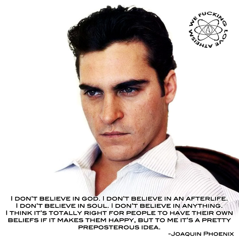 Atheism, Joaquin Phoenix, Quotes I don’t believe Image November 5, 2014 We Fucking Love Atheism Leave a comment
