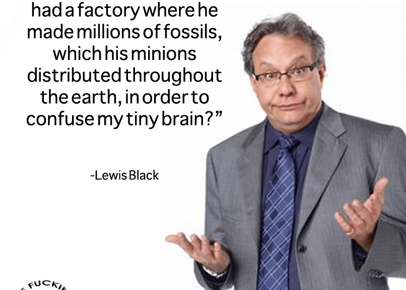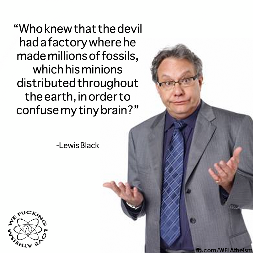 Atheism, Lewis Black, Quotes The devil makes fossils to confuse my tiny brain Image October 16, 2014 We Fucking Love Atheism Leave a comment