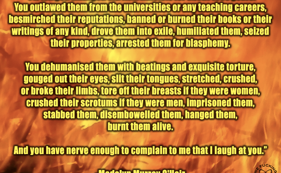 Anti-Theism, Atheism, Female Voices, Madalyn Murray O'Hair, Quotes I laugh at you Image January 24, 2015 We Fucking Love Atheism Leave a comment