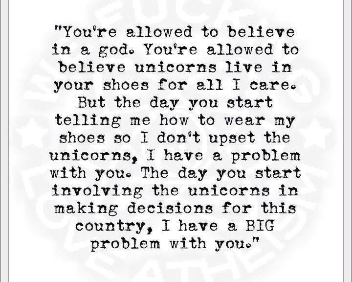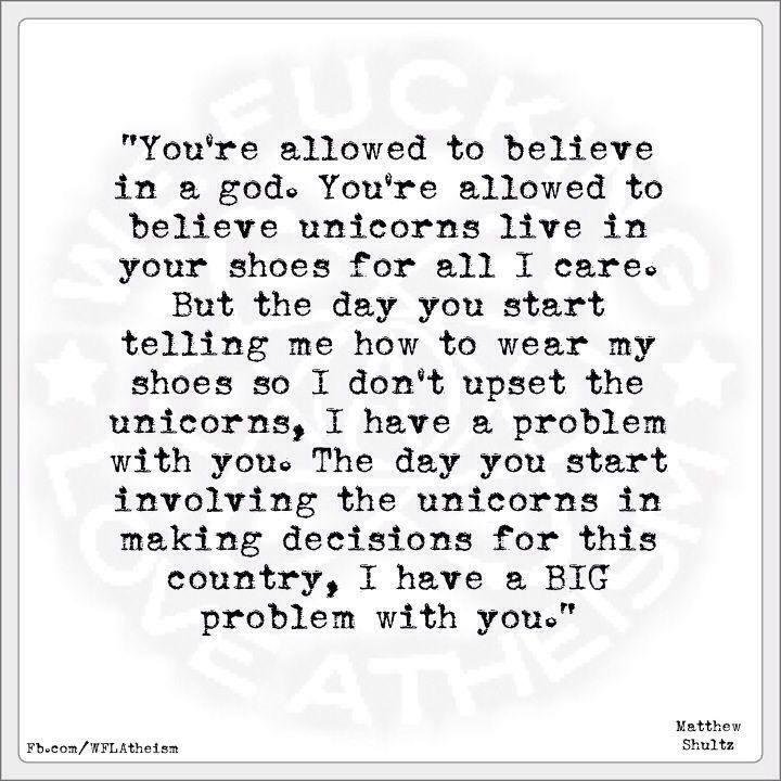 Atheism, Matthew Shultz, Quotes Unicorns live in your shoes Image December 19, 2014 We Fucking Love Atheism Leave a comment
