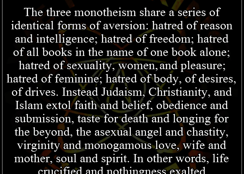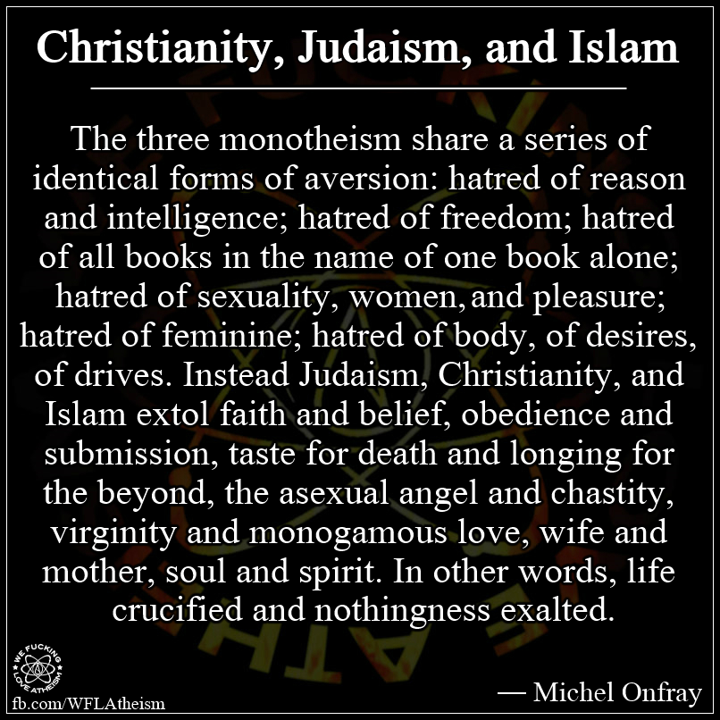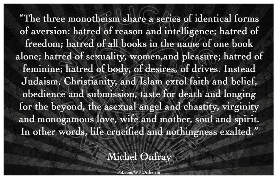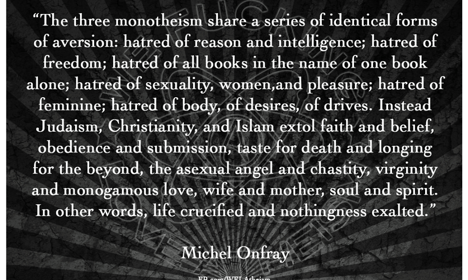 Atheism, Islam, Michel Onfray, Quotes The three monotheisms Image March 12, 2015 We Fucking Love Atheism Leave a comment