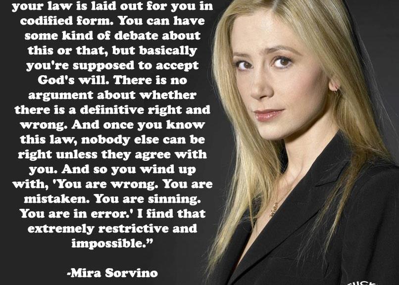 Agnostic, Atheism, Female Voices, Mira Sorvino, Quotes Extremely restrictive and impossible Image November 26, 2014 We Fucking Love Atheism Leave a comment