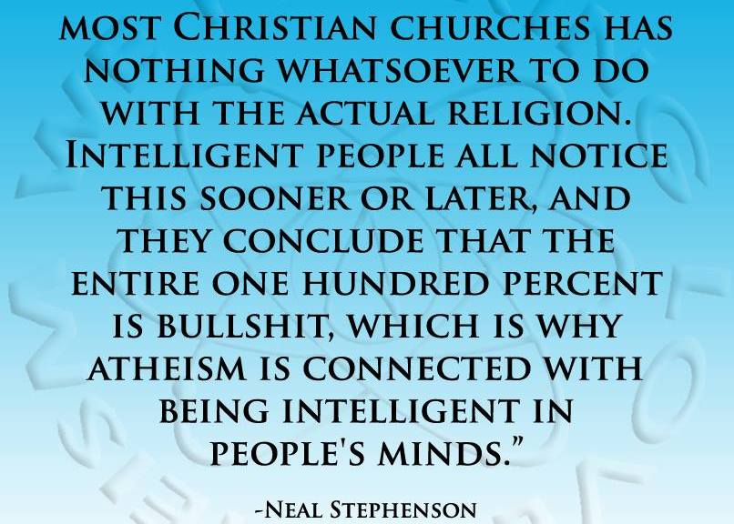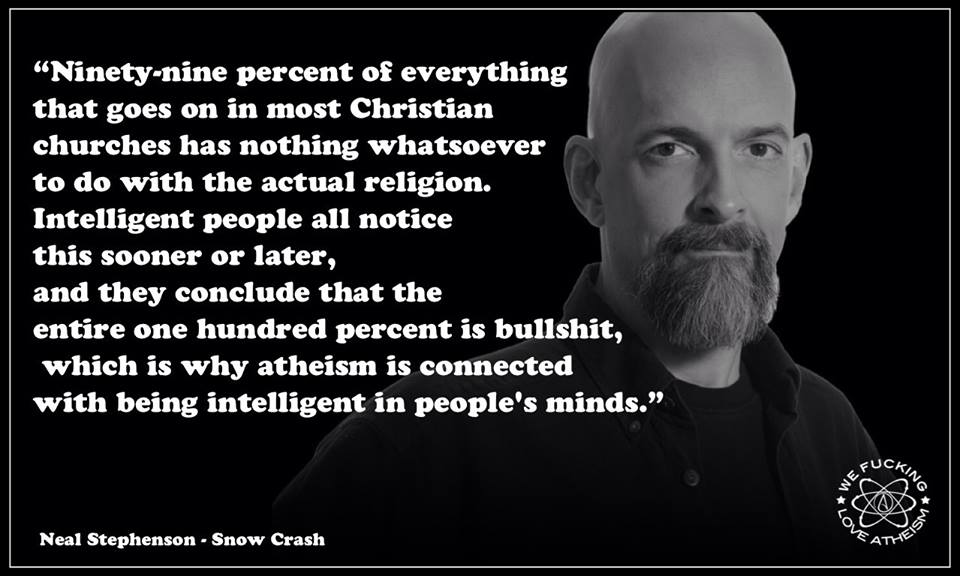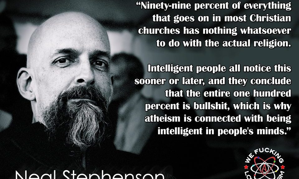 Atheism, Neal Stephenson 100% bullshit Image December 3, 2014 We Fucking Love Atheism Leave a comment