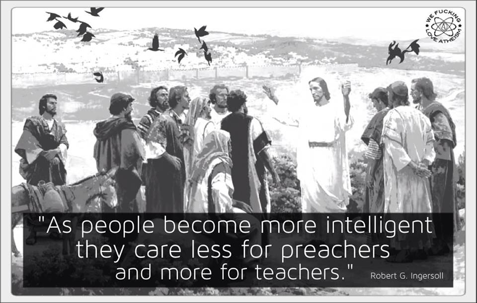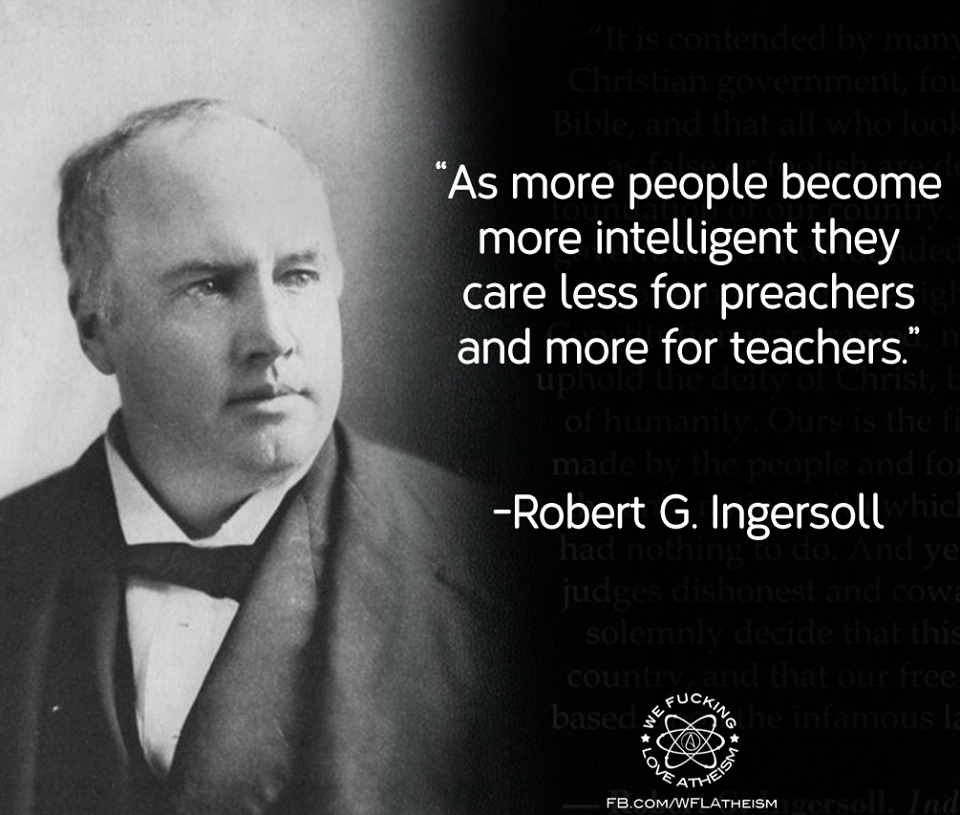 Atheism, Quotes, Robert G. Ingersoll Teachers or preachers Image November 21, 2014 We Fucking Love Atheism Leave a comment