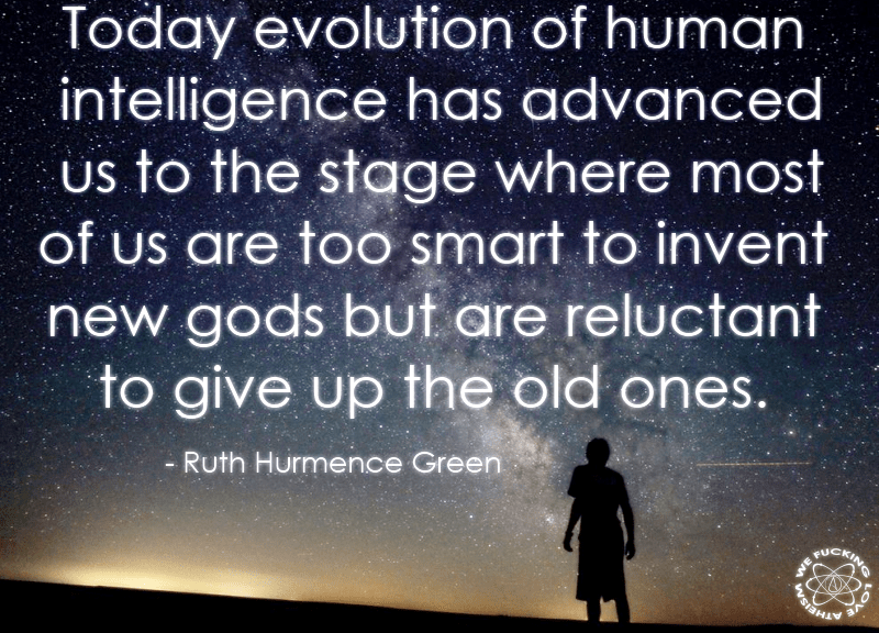 Atheism, Evolution, Female Voices, Quotes, Ruth Hurmence Green Too smart to invent new gods… Image October 31, 2014 We Fucking Love Atheism Leave a comment