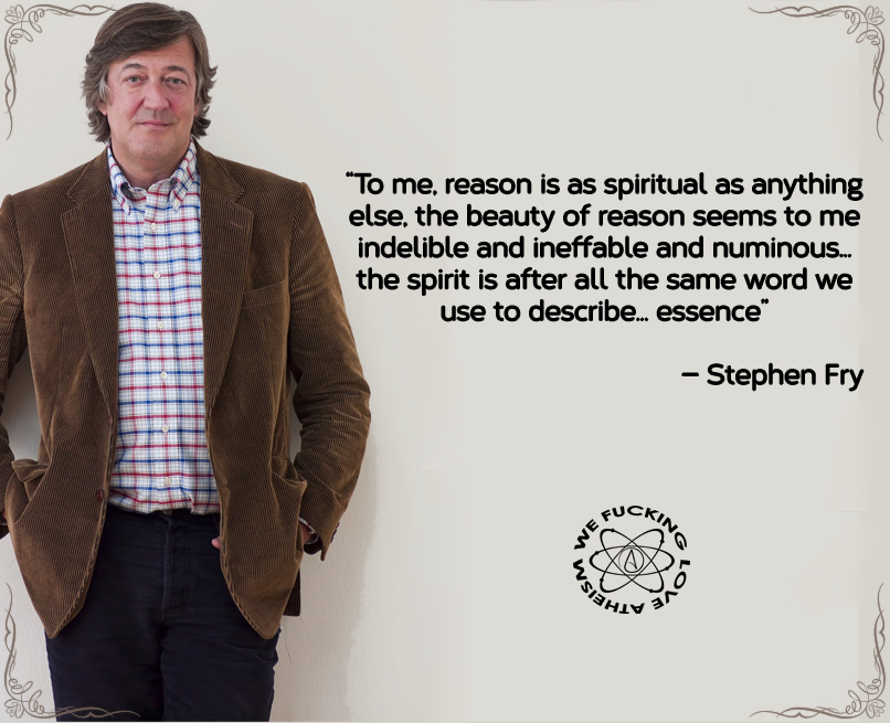 Atheism, Quotes, Stephen Fry Reason is spiritual Image November 8, 2014 We Fucking Love Atheism Leave a comment
