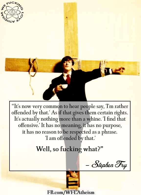 Atheism, Quotes, Stephen Fry No such thing as blasphemy Image November 8, 2014 We Fucking Love Atheism Leave a comment