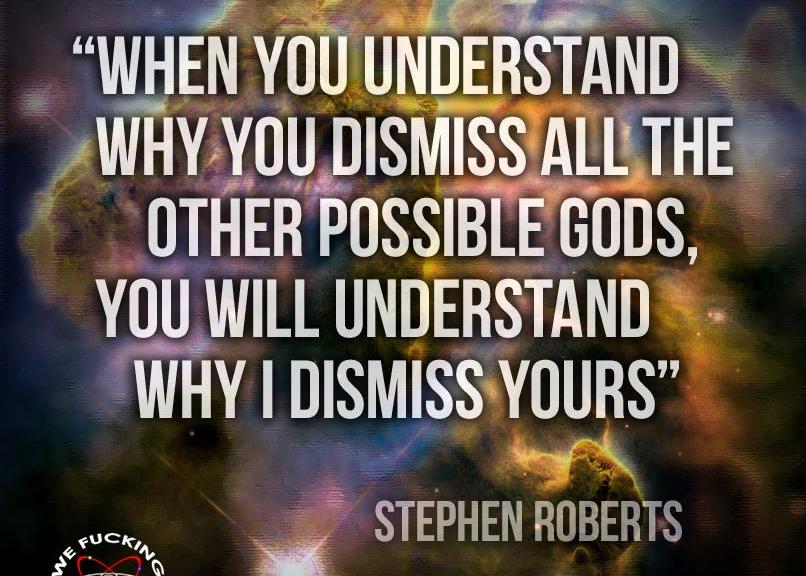 Atheism, Quotes, Stephen Roberts Why I dismiss your god Image October 14, 2014 We Fucking Love Atheism Leave a comment