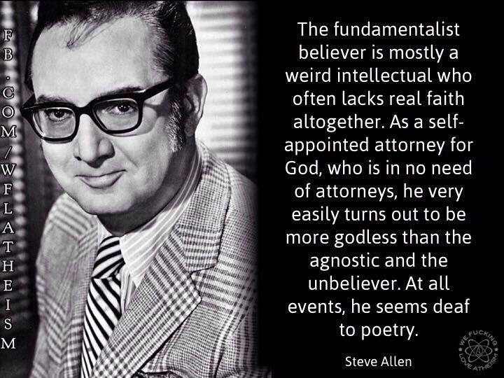Atheism, Quotes, Steve Allen The fundamentalist believer Image March 11, 2015 We Fucking Love Atheism Leave a comment