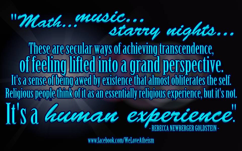 Atheism, Quotes, Secular Humanist Secular ways of achieving transcendence Image September 9, 2014 We Fucking Love Atheism Leave a comment