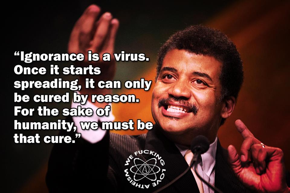 Neil deGrasse Tyson, Science, Secular Humanist Ignorance is a virus Image October 14, 2014 We Fucking Love Atheism Leave a comment