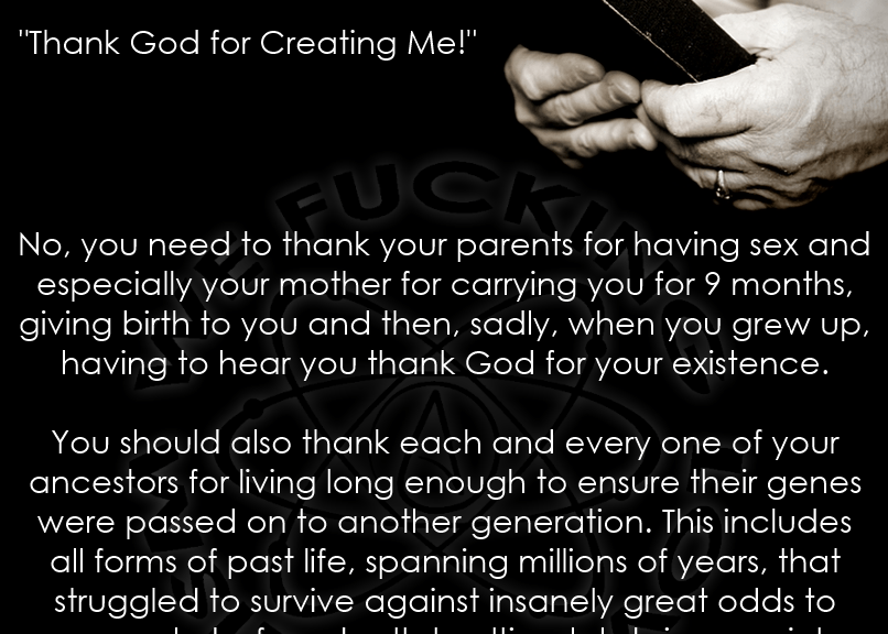 Atheism, Evolution, Shit Theists Say Shit theists say… Image December 19, 2014 We Fucking Love Atheism Leave a comment
