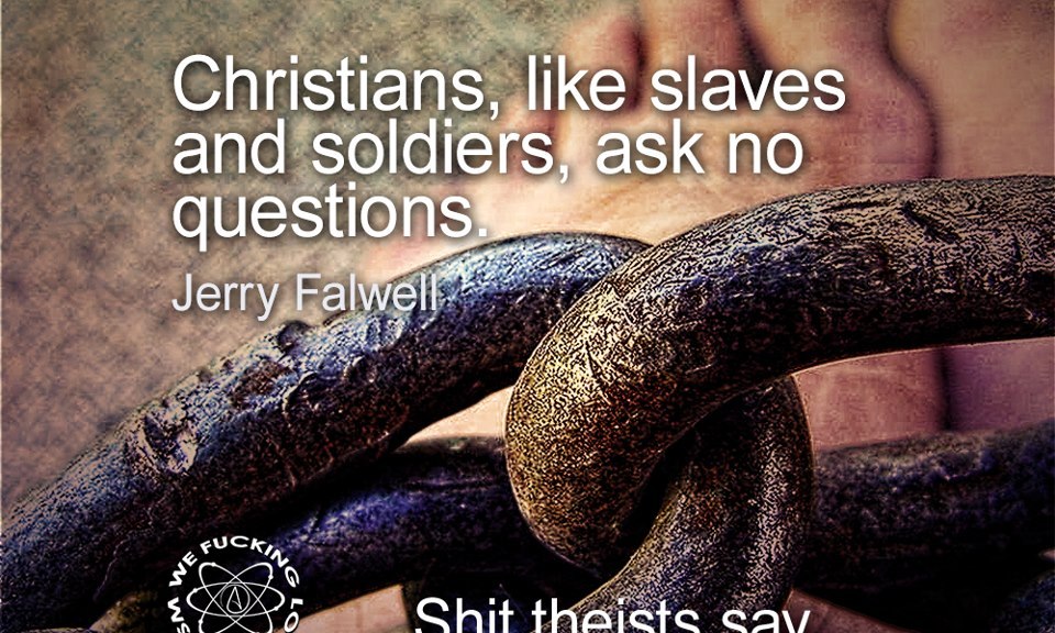Shit Theists Say Stupid shit theists say… Image October 18, 2014 We Fucking Love Atheism Leave a comment