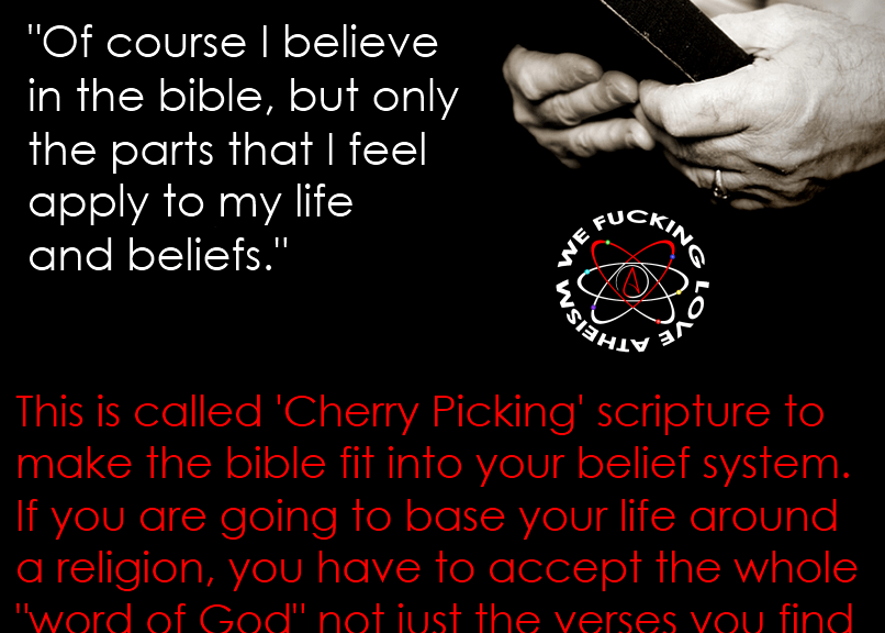 Shit Theists Say Shit theists say… cherry picking Image November 8, 2014 We Fucking Love Atheism Leave a comment